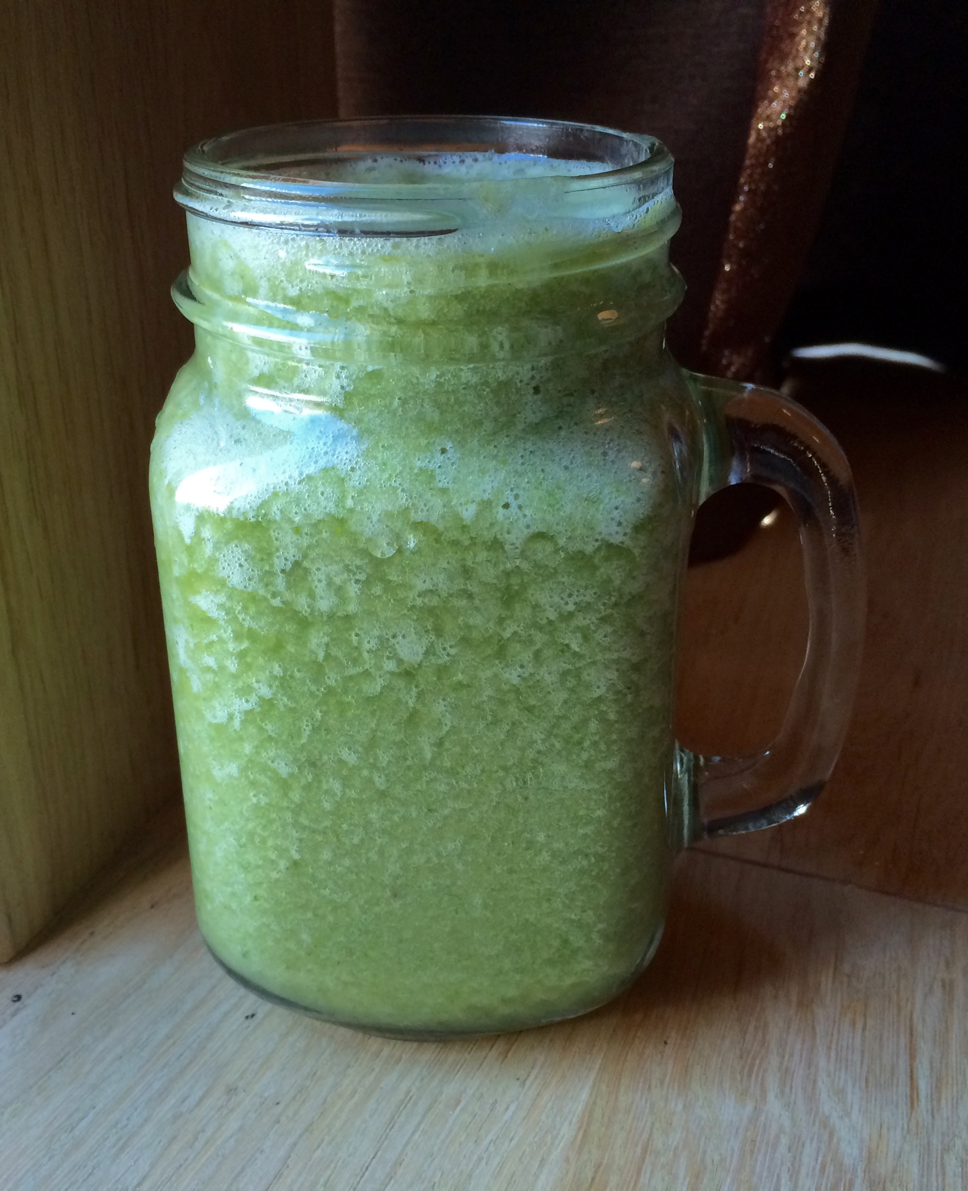 - viską sudėjau, įpyliau vandens ir išplakiau (plakti reikia apie minutę, kol salotos tampa vienalyte mase su bananais) (turiu omeny blenderyje. Ranka plakti nereikėtų)