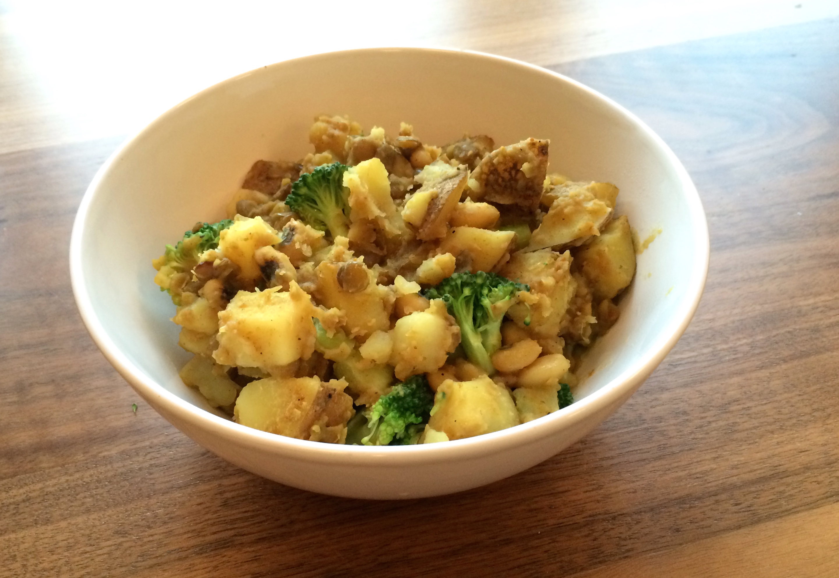 Veganų bendruomenėje dažnai matau komentarų apie tai, kad augalinio maisto patiekalai turi būti spalvoti – kuo daugiau vaivorykštės, tuo daugiau vitaminų ir panašiai. Dėl to dažnai kompleksuoju, kad mano pagamintas patiekalas atrodo nespalvotas ir nusprendžiu išvis nedėti jo recepto į blogą. Bet dabar pagalvojau (o tai nutinka retokai), kodėl ruda nėra spalva? Indiškoje virtuvėje dominuoja pagrinde geltona – ruda – oranžinė ir jų atspalviai, taigi pristatau savo indiško bulvių kàrio interpretaciją.